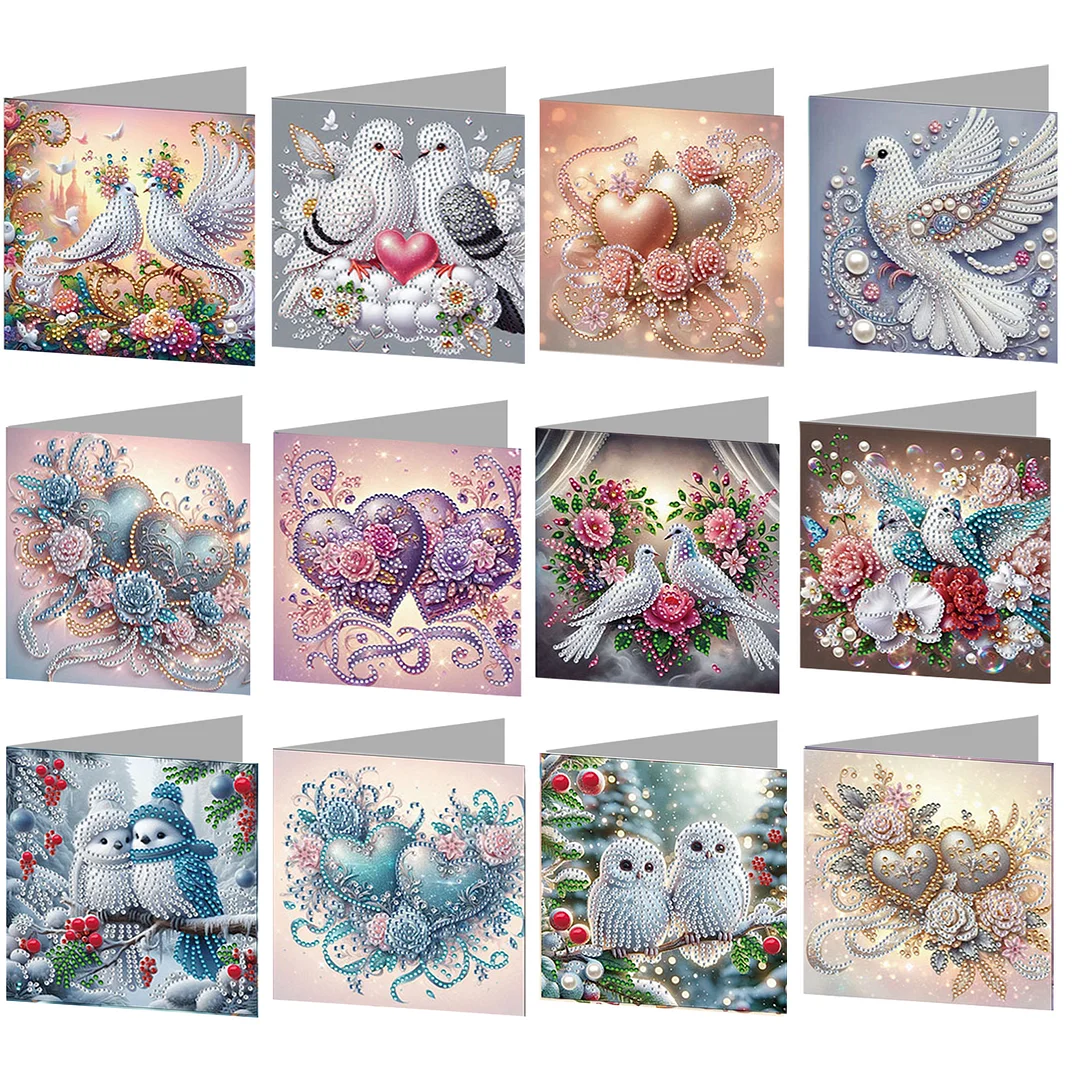12pcs Diamond Painting Love and Peace Greeting Card Set with Envelope Daily Wishing Cards for Birthdays Thanksgiving & Special Occasion