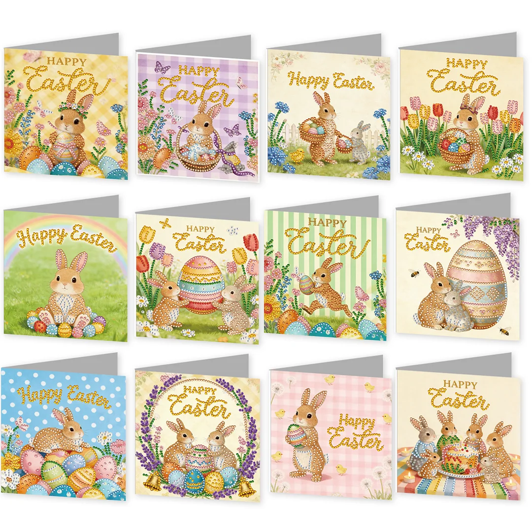 12PCS Diamond Painting Retro Easter Greeting Card Kit for Birthdays Thanksgiving & Special Occasion
