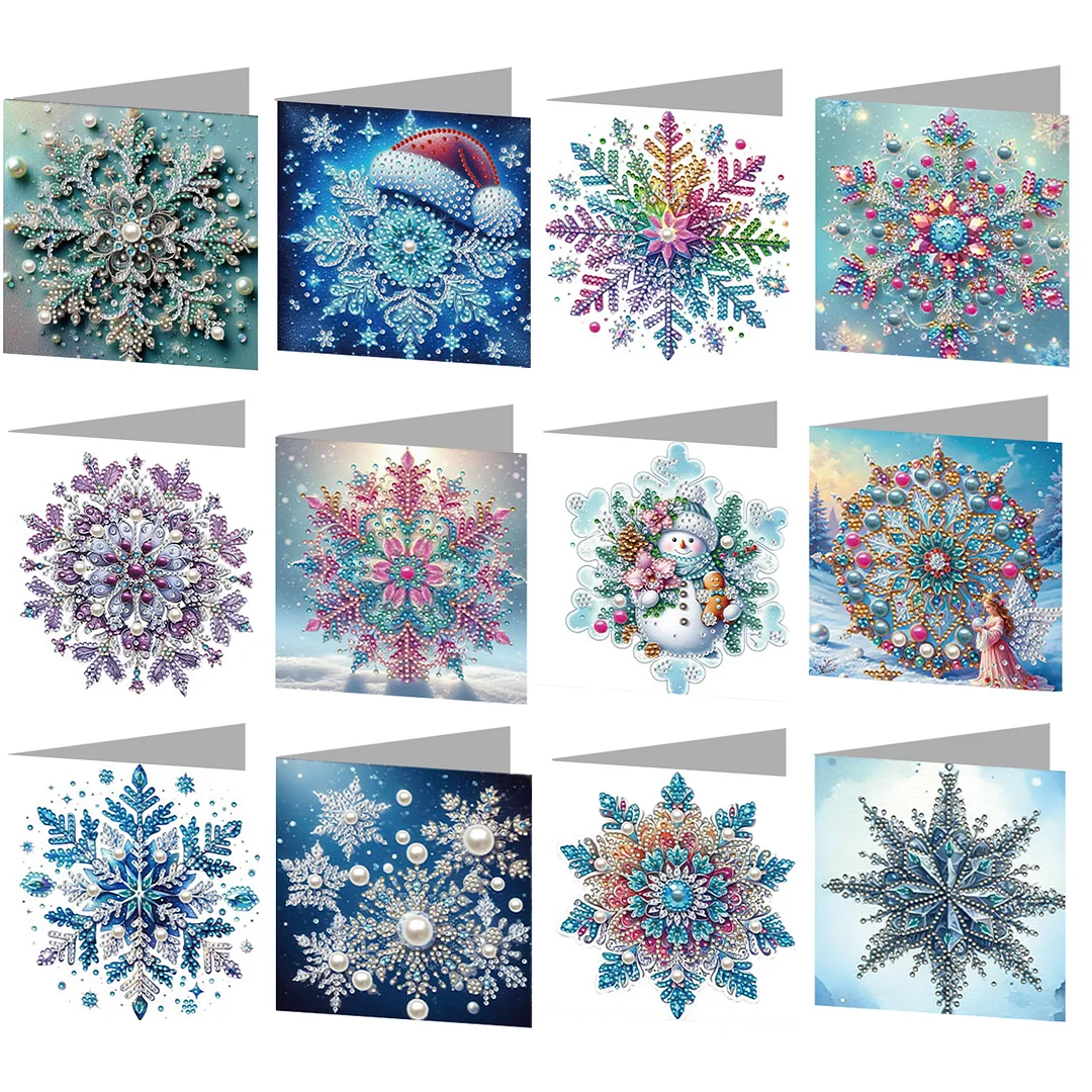 12pcs Diamond Painting Snowflake Greeting Card Set with Envelope Daily Wishing Cards for Birthdays Thanksgiving & Special Occasion
