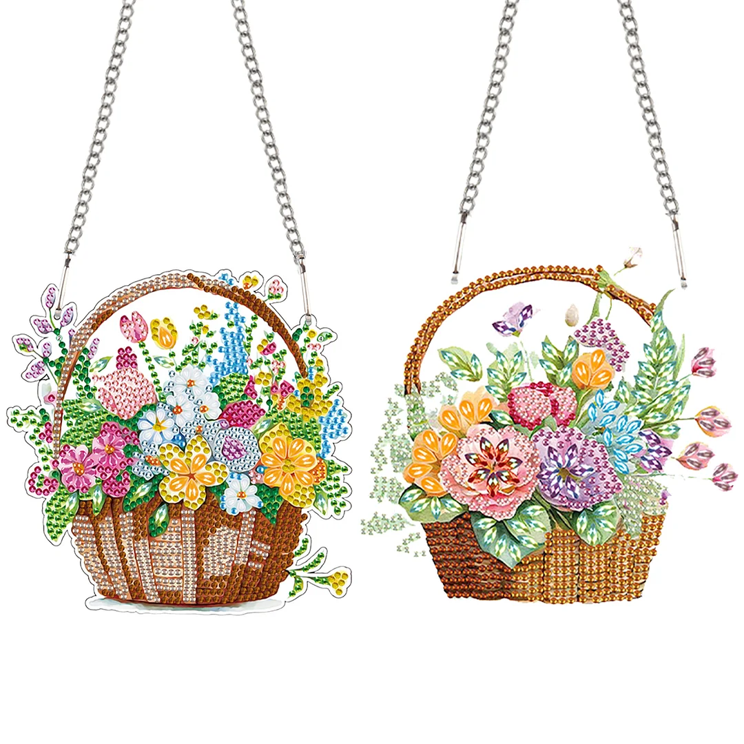 2Pcs Diamond Painting Flower Basket Diamond Art Pendant Wall Decor