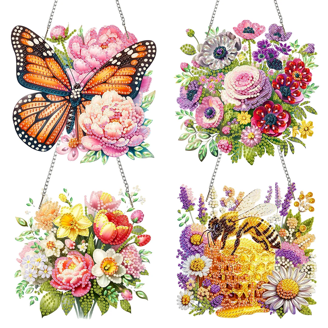 4Pcs Diamond Painting Acrylic Insect Pendant Single Side Drill Home Garden Decor