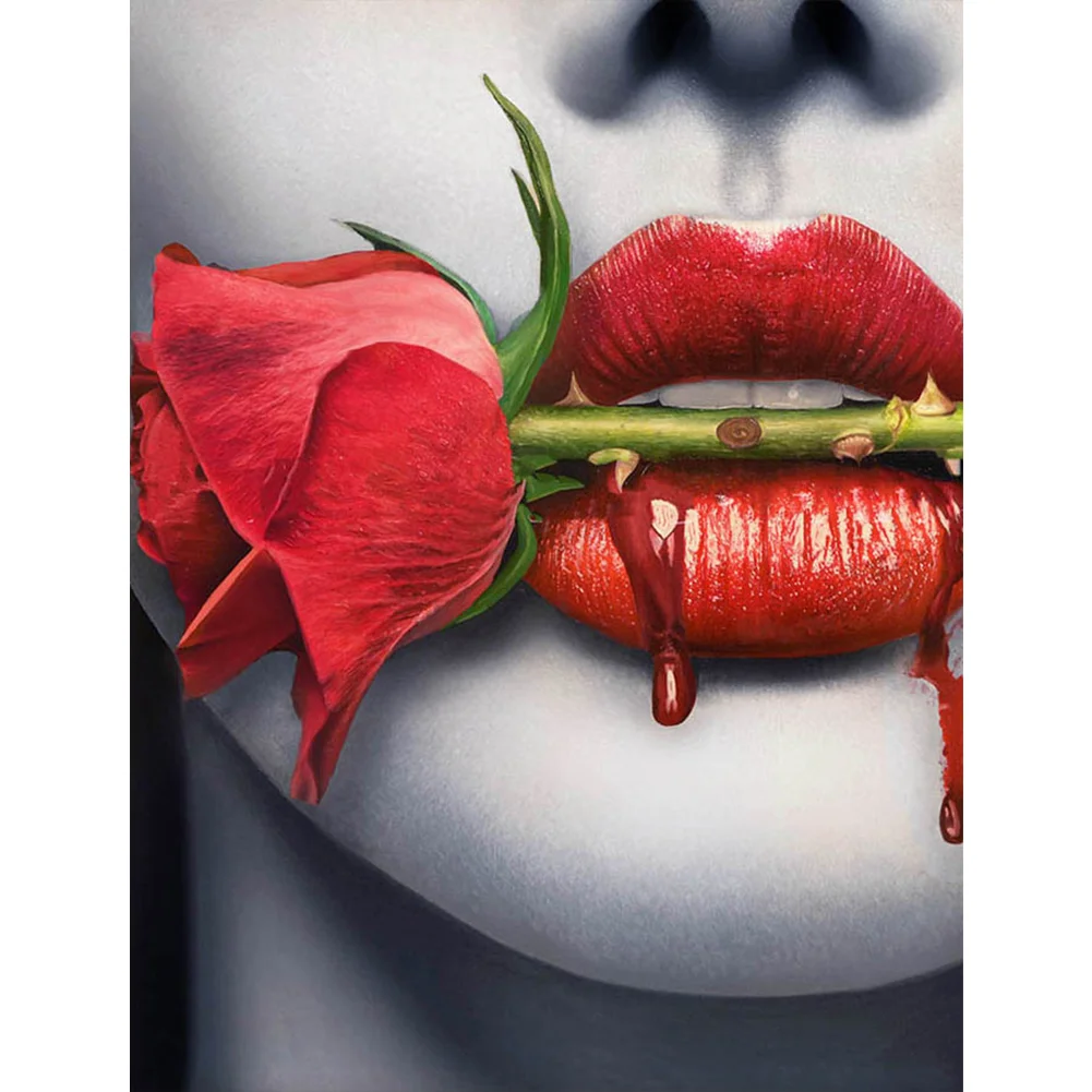 5D DIY Diamond Painting Rose in Mouth Full Round Drill Mosaic Art Picture of Rhinestone Kit Handmade Gift Home Decorations