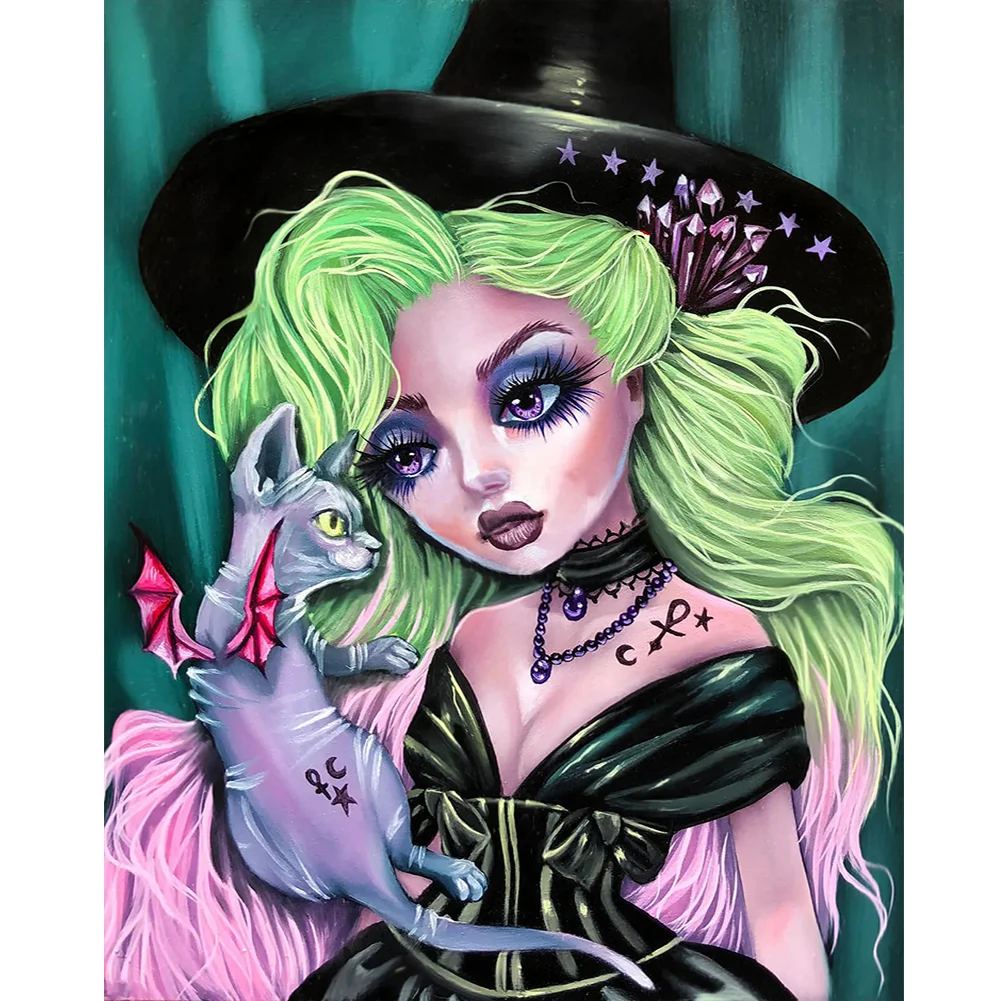 Diamond Painting-DIY Full Round Drill Girl with Green Hair(40x50cm)
