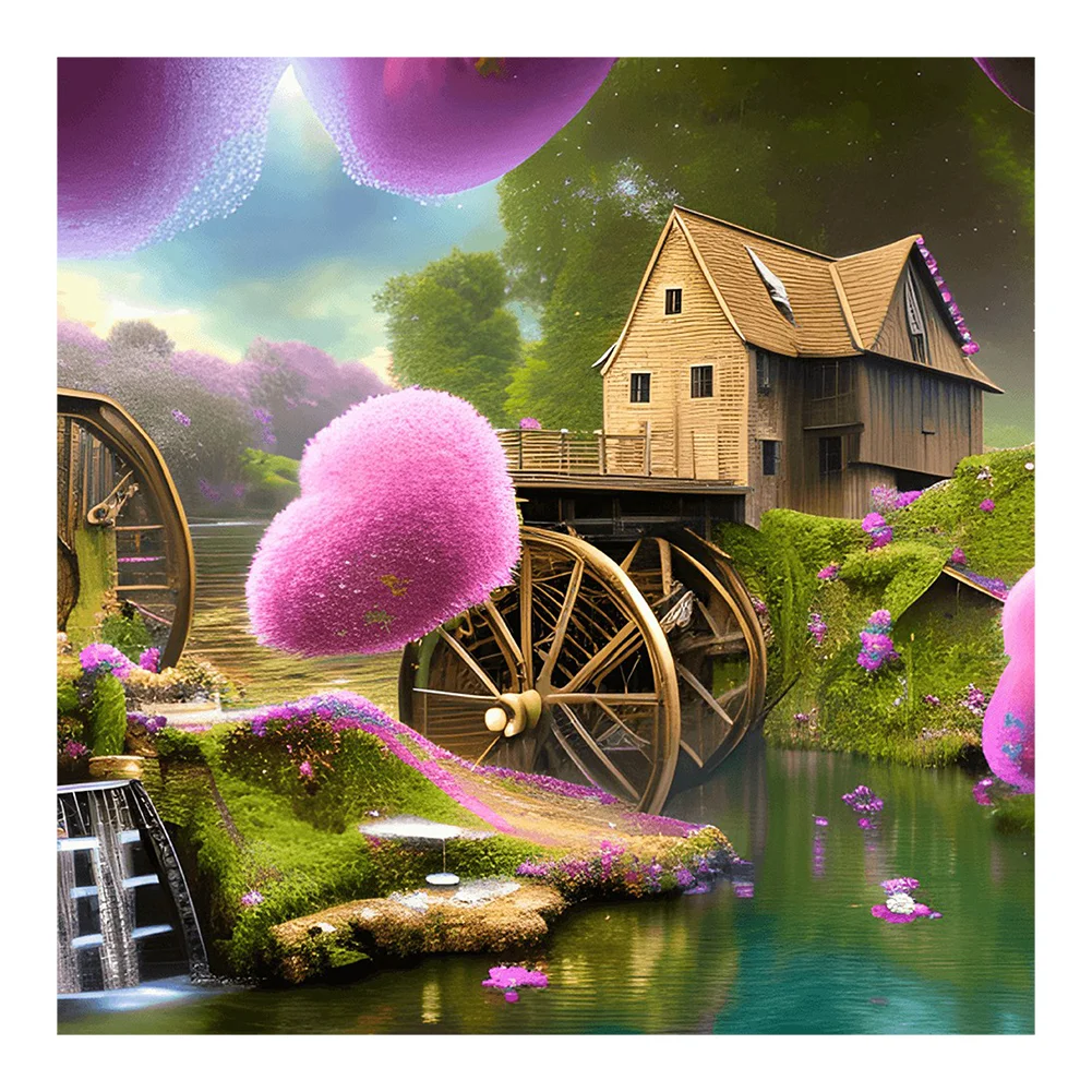 Diamond Painting-DIY Full Round Drill Waterwheel Landscape(40x40cm)