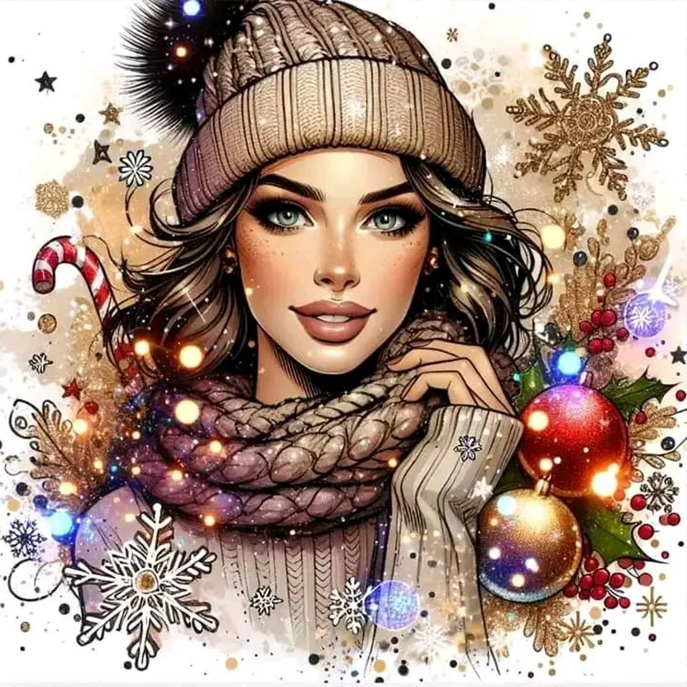Diamond Painting -DIY Round Drill Xmas Girl(40x40 CM)
