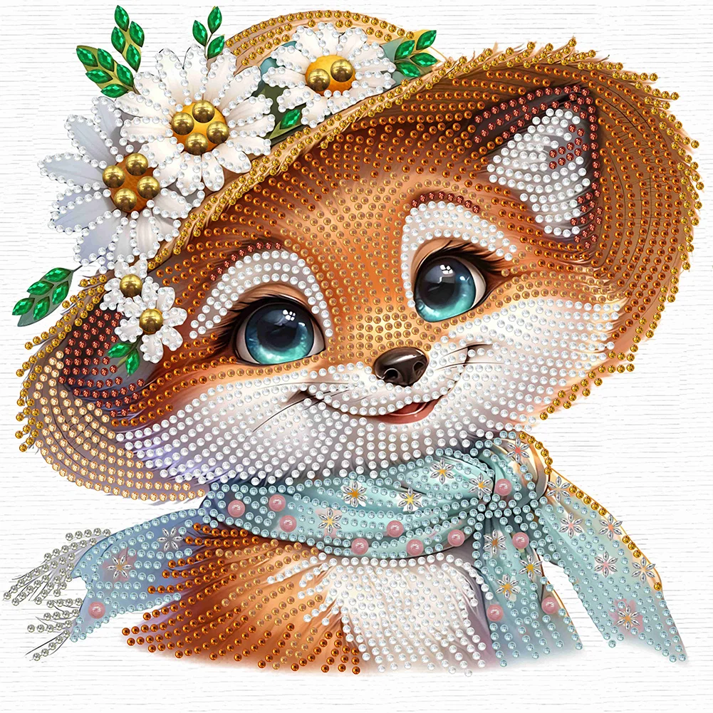 Diamond Painting-DIY Crystal Rhinestone Flowers and Fox
