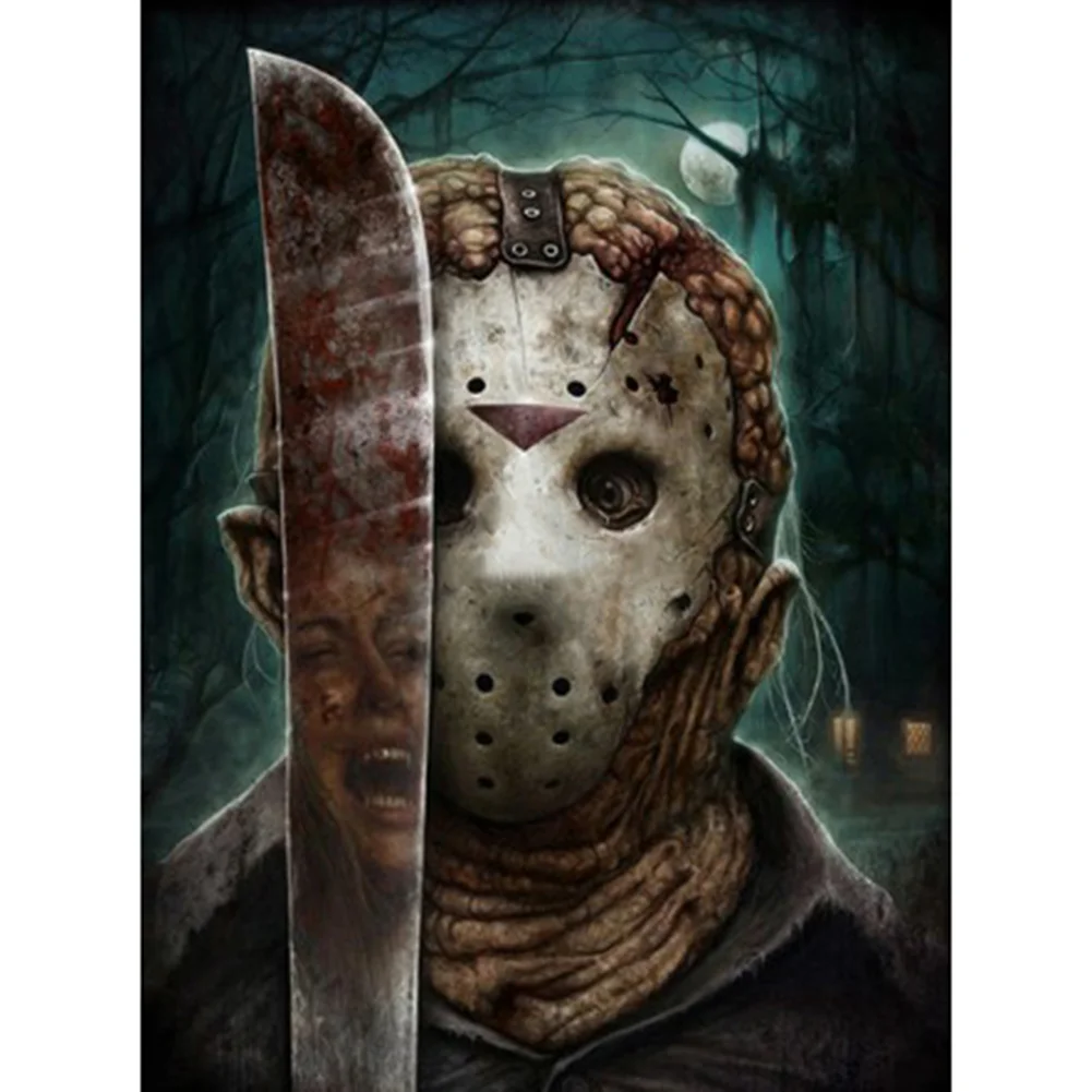 5D DIY Full Round Drill Diamond Painting Horror Person Mosaic Kit Rhinestones Pictures Handmade Wall Art Craft for Home Room Decoration