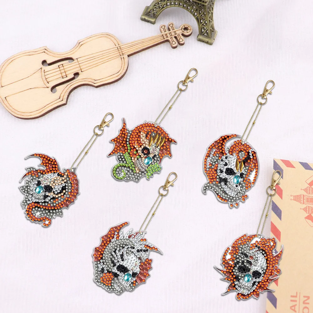 5Pcs DIY Diamond Painting Dragon Keychain