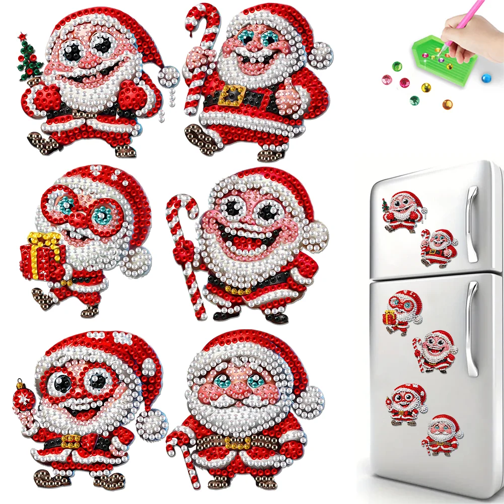 6Pcs Diamond Painting Acrylic Santa Claus Fridge Stickers