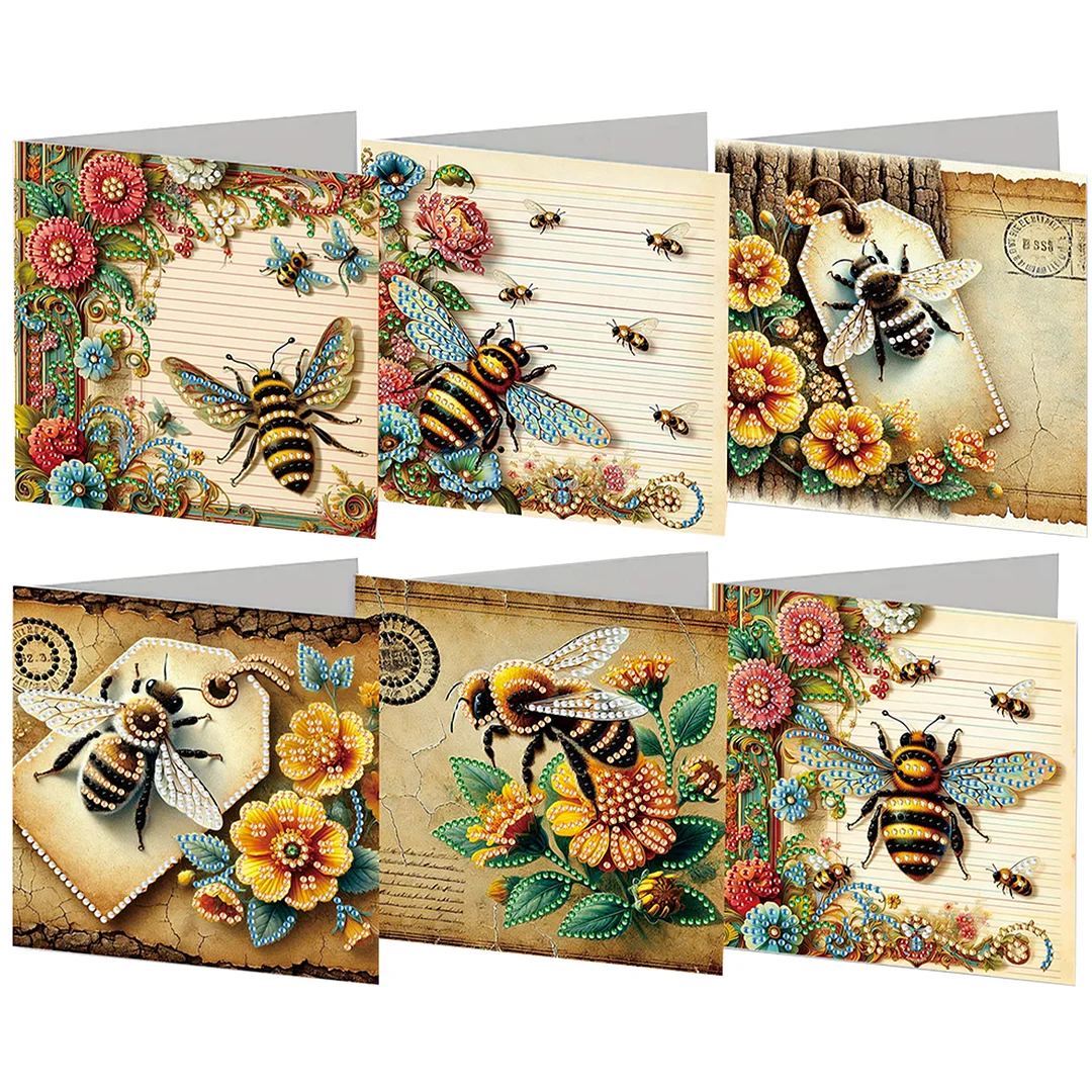 6pcs Diamond Painting Bee Greeting Card with Envelope for Family Friends Holiday Gift Congratulations