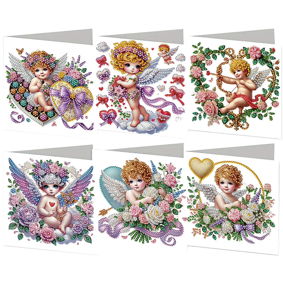 6PCS Diamond Painting Cupid Greeting Card Set with Envelopes for Adults Gifts