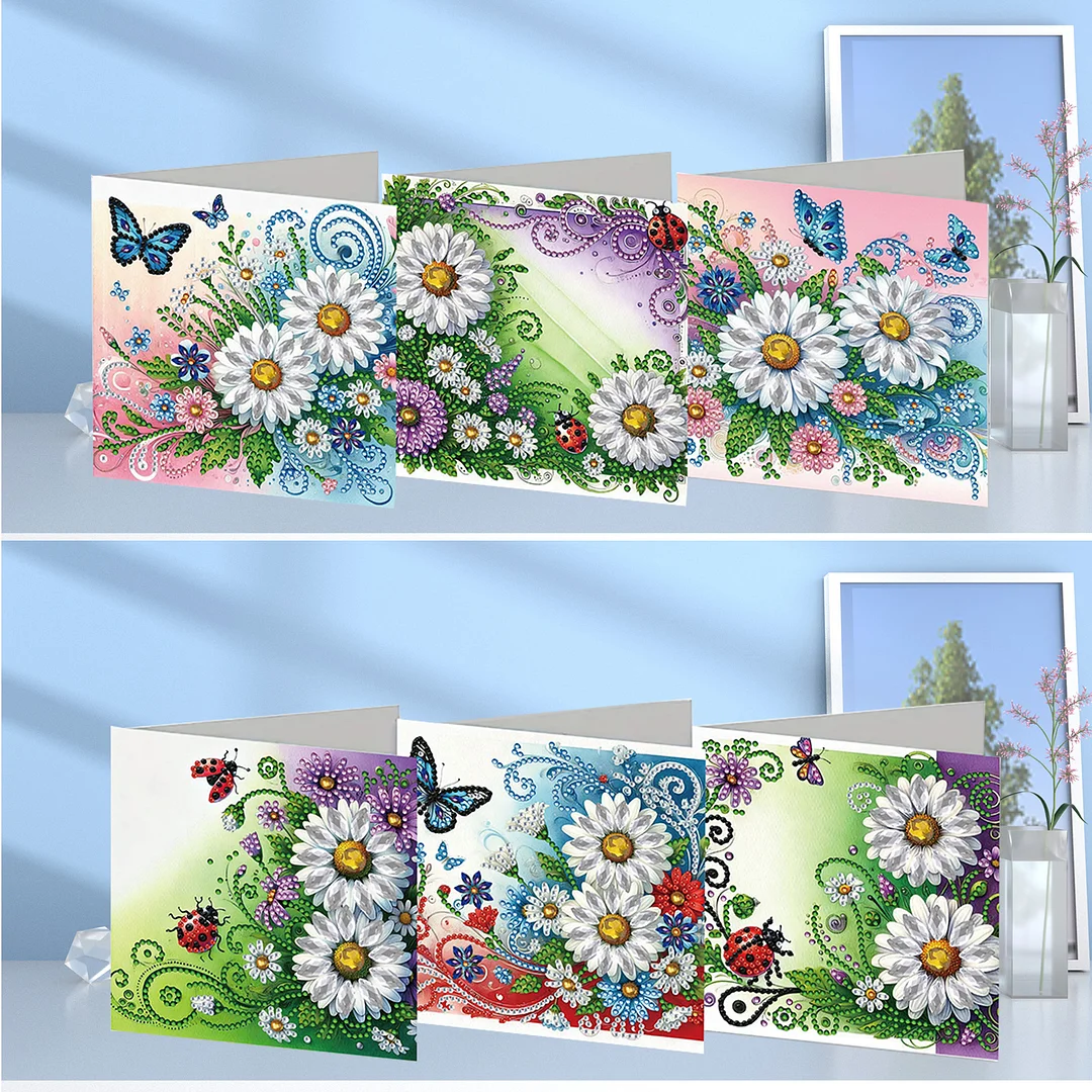 6Pcs Diamond Painting Daisies Greeting Card Set with Envelopes for Beginner Adult Holiday Gifts