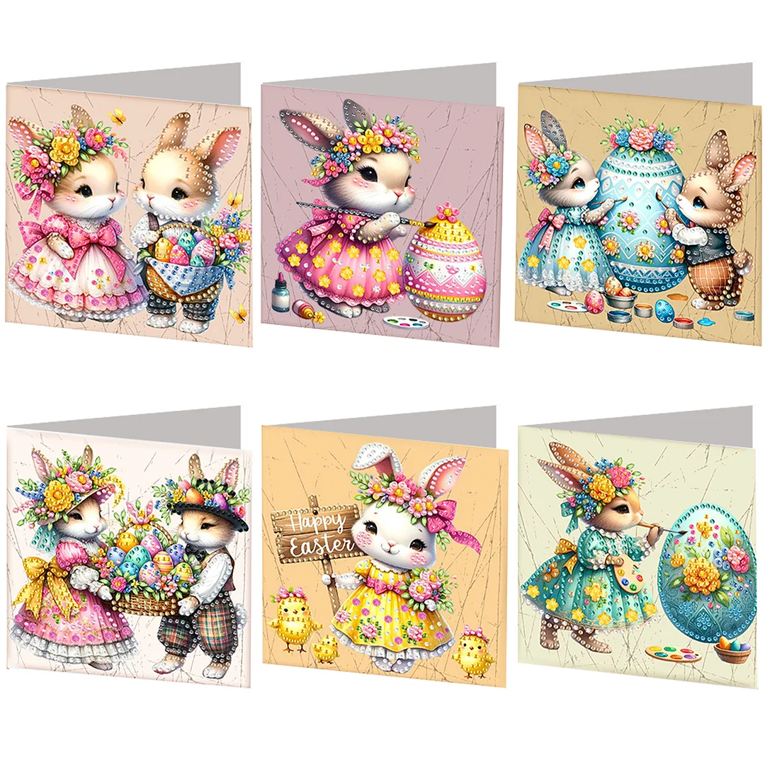 6PCS Diamond Painting Easter Bunny Greeting Card Kit for Birthdays Thanksgiving & Special Occasion