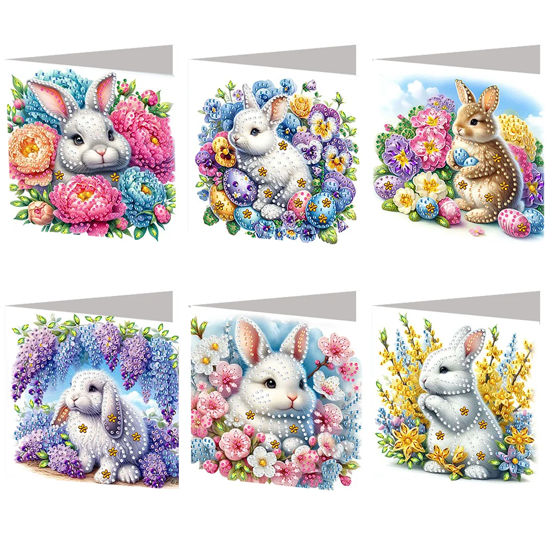 6PCS Diamond Painting Easter Rabbit Greeting Card Kit for Birthdays Thanksgiving & Special Occasion