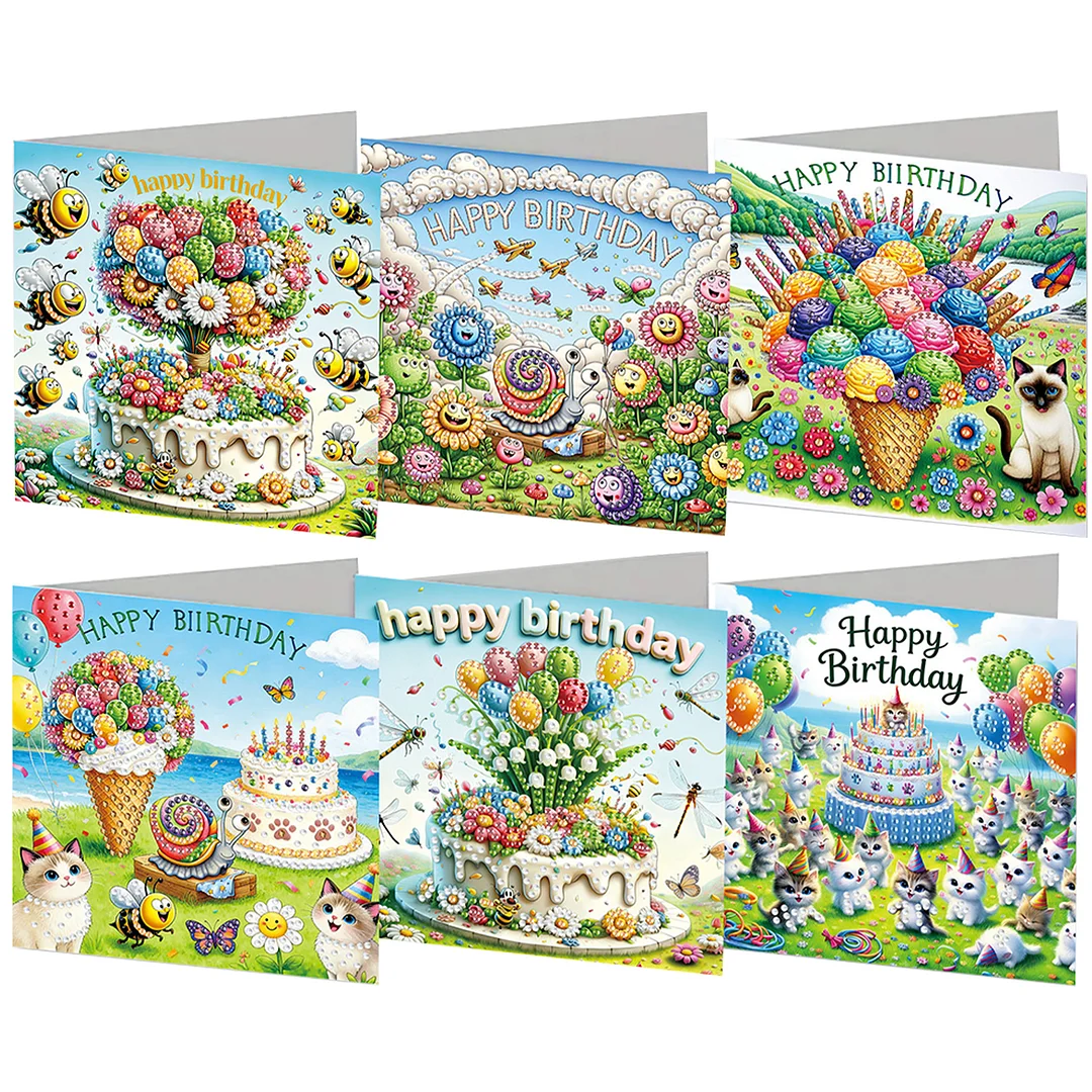 6pcs Diamond Painting Happy Birthdays Greeting Card with Envelope for Family Friends Holiday Gift Congratulations