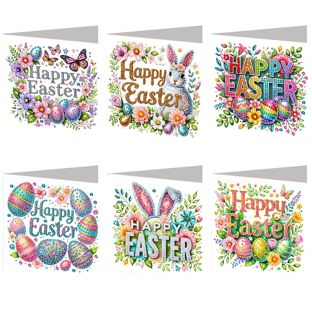 6PCS Diamond Painting Happy Easter Greeting Card Kit for Birthdays Thanksgiving & Special Occasion