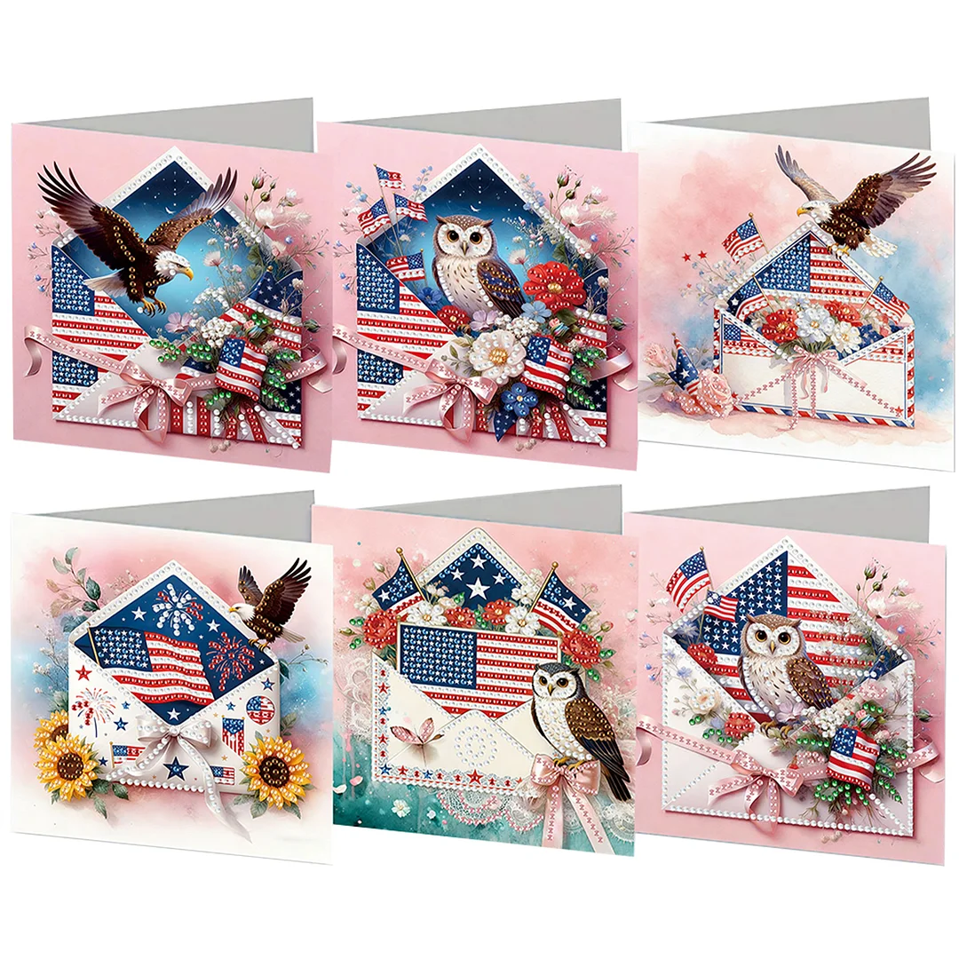 6pcs Diamond Painting Independence Day Greeting Card with Envelope for Family Friends Holiday Gift Congratulations