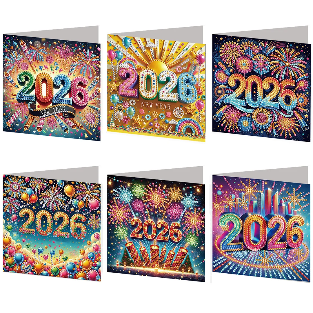 6PCS Diamond Painting New Year Greeting Cards Postcards with Envelopes