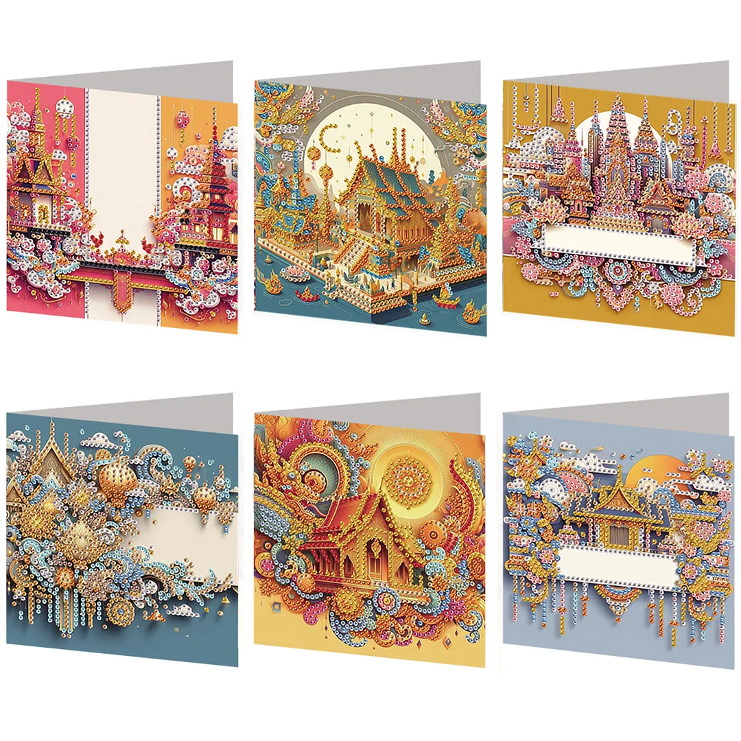 6PCS Diamond Painting Palaces Greeting Cards Postcards with Envelopes