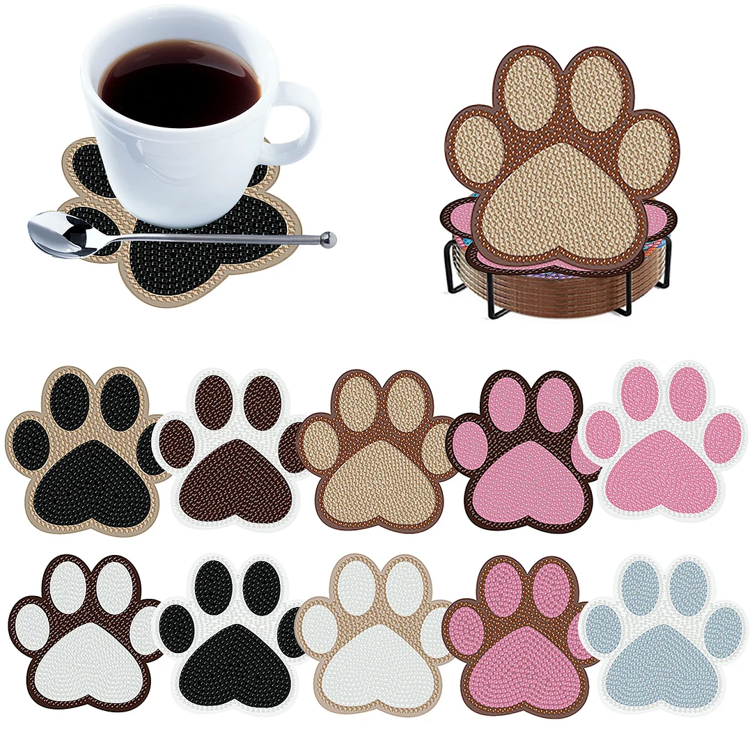 8Pcs Diamond Painting Wooden Cat Paw Coaster Diamond Art Kit w/ Holder No-Slip Decor