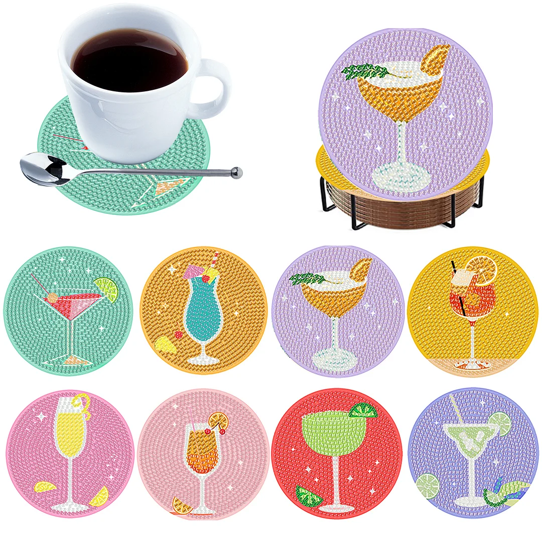 8Pcs Diamond Painting Wooden Fresh Style Coaster Diamond Art Kit w/ Holder No-Slip Decor