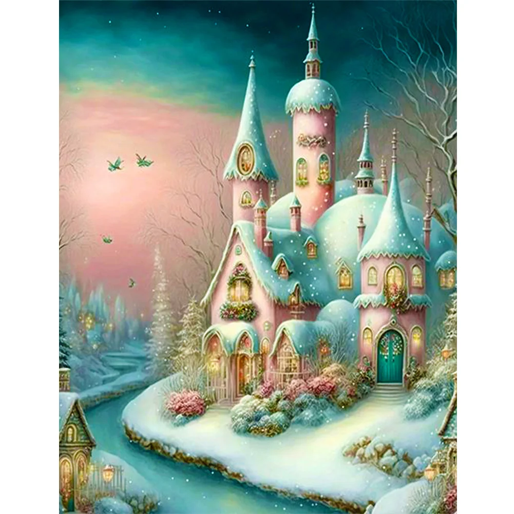 Castle Diamond Rhinestone Drawing Resin Canvas 5D DIY Diamond Artwork Handmade Crafts Gift Full Round Drill for Office Home Wall