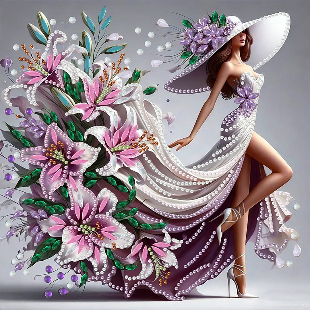 Diamond Painting-DIY Crystal Rhinestone Lily Dress Elegant Girl(Box Packaging)