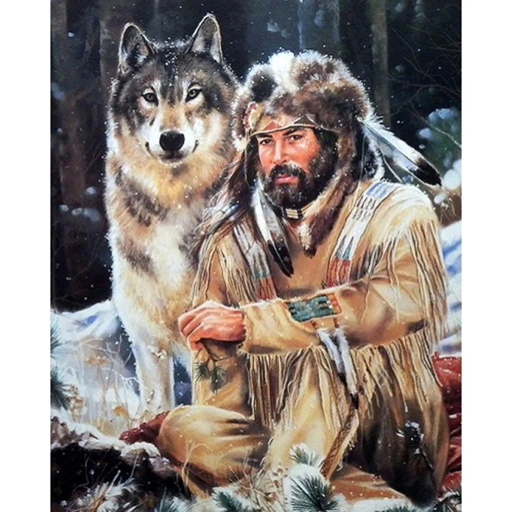 Diamond Painting -DIY Full Square Drill Man with Wolf(50x70cm)