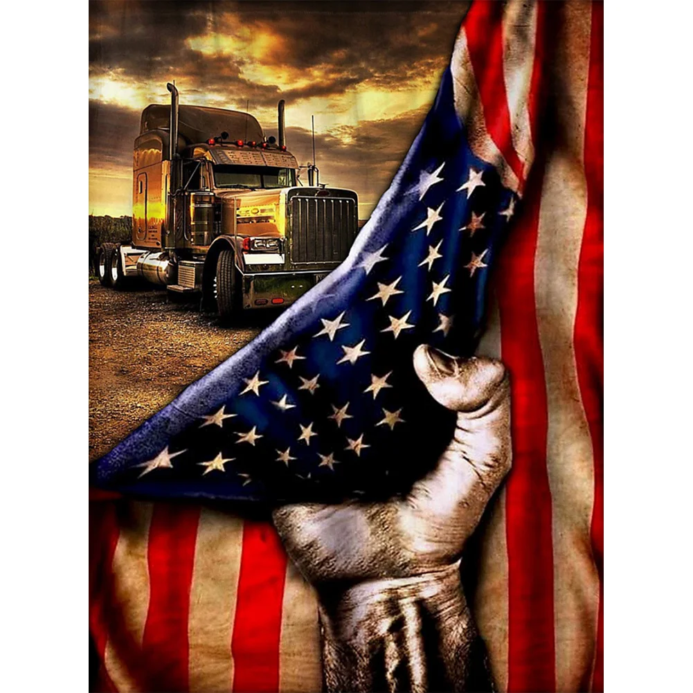 Diamond Painting -DIY Full Square Drill American Flag Car