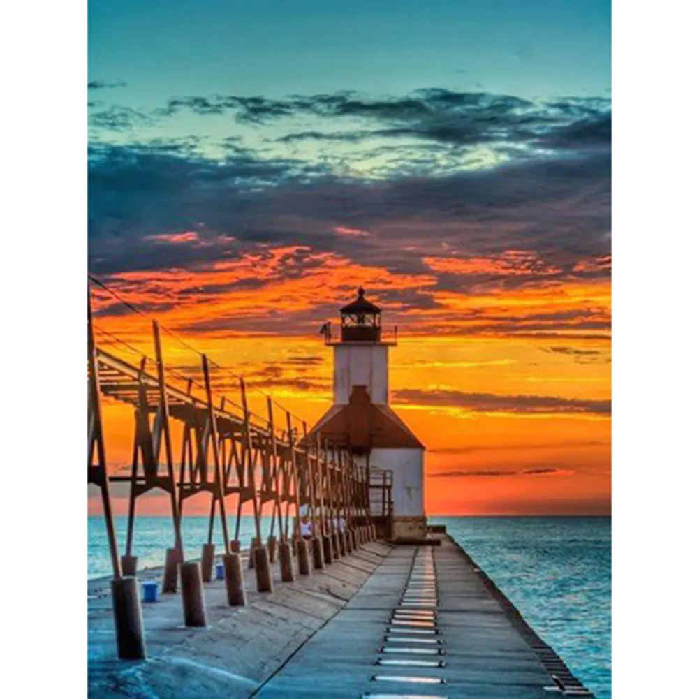 Diamond Painting -DIY Full Square Drill Sunset Lighthouse