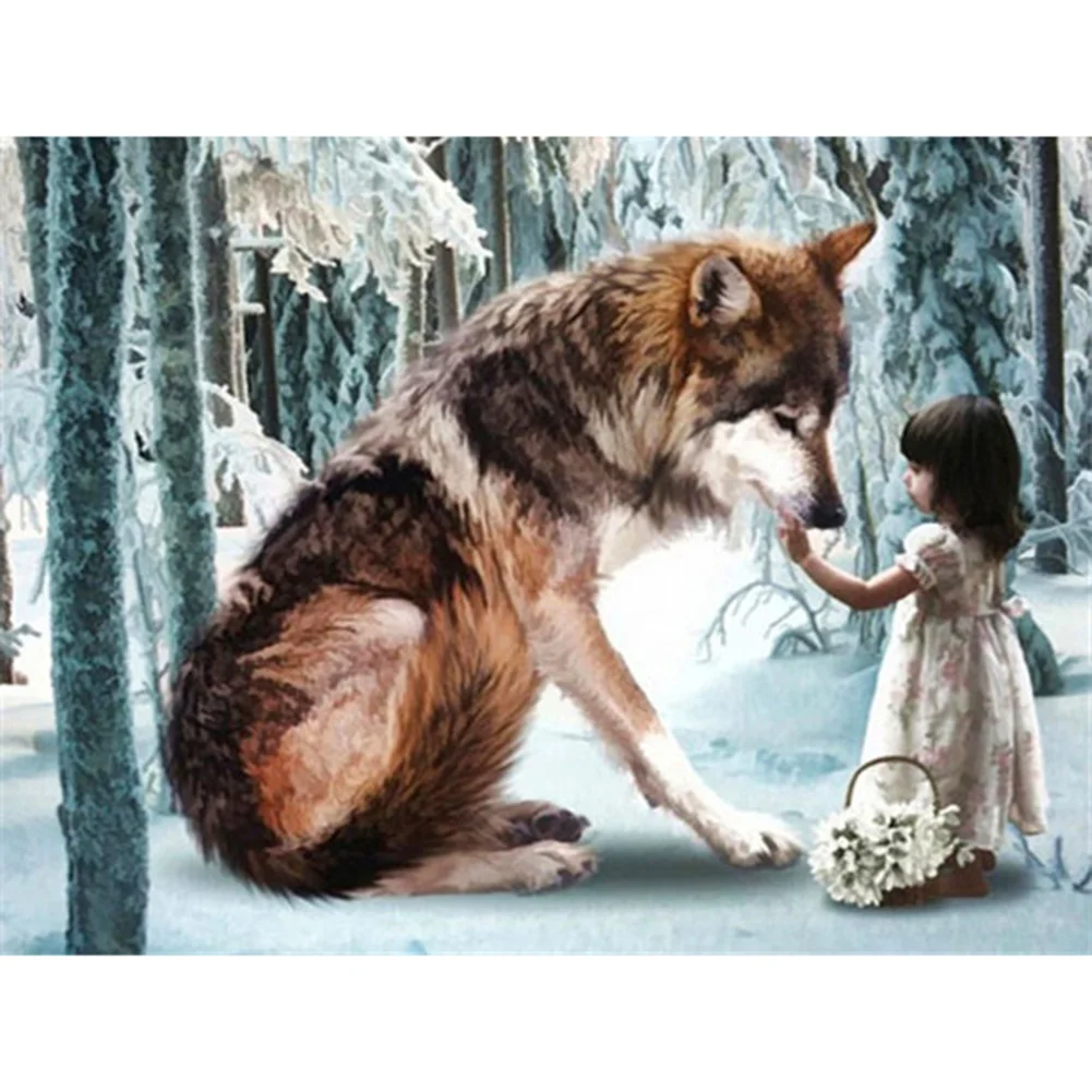 Diamond Painting -5D Full Square Drill Girl and Wolf