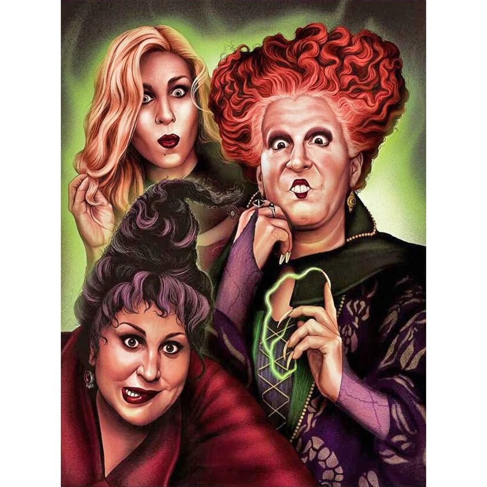 DIY 5D Mosaic Full Drill Round Shape Diamond Crazy Witch Resin Painting Kit Rhinestone Drawing Home Art Craft Bedroom Decoration