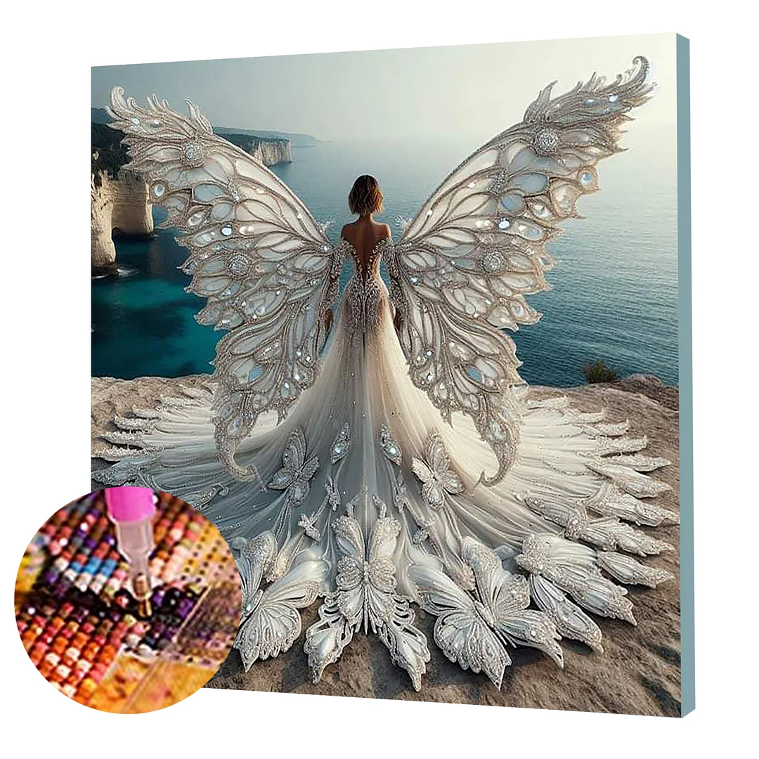 (Framed)Diamond Painting -DIY Round Drill Winged Girl with Frame(25x25cm)