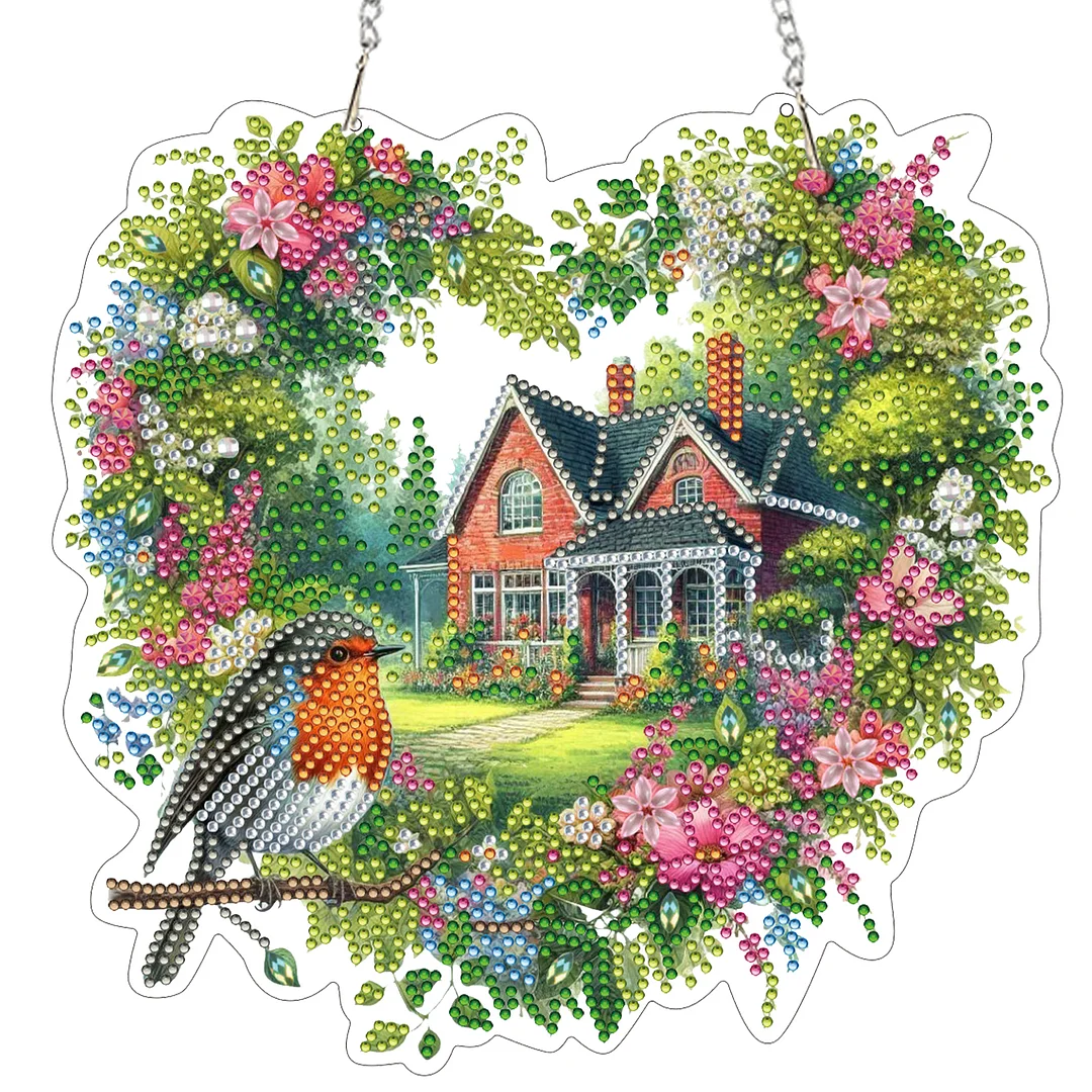 Diamond Painting Acrylic Cabin in The Woods Window Hanging Pendant for Home Decor