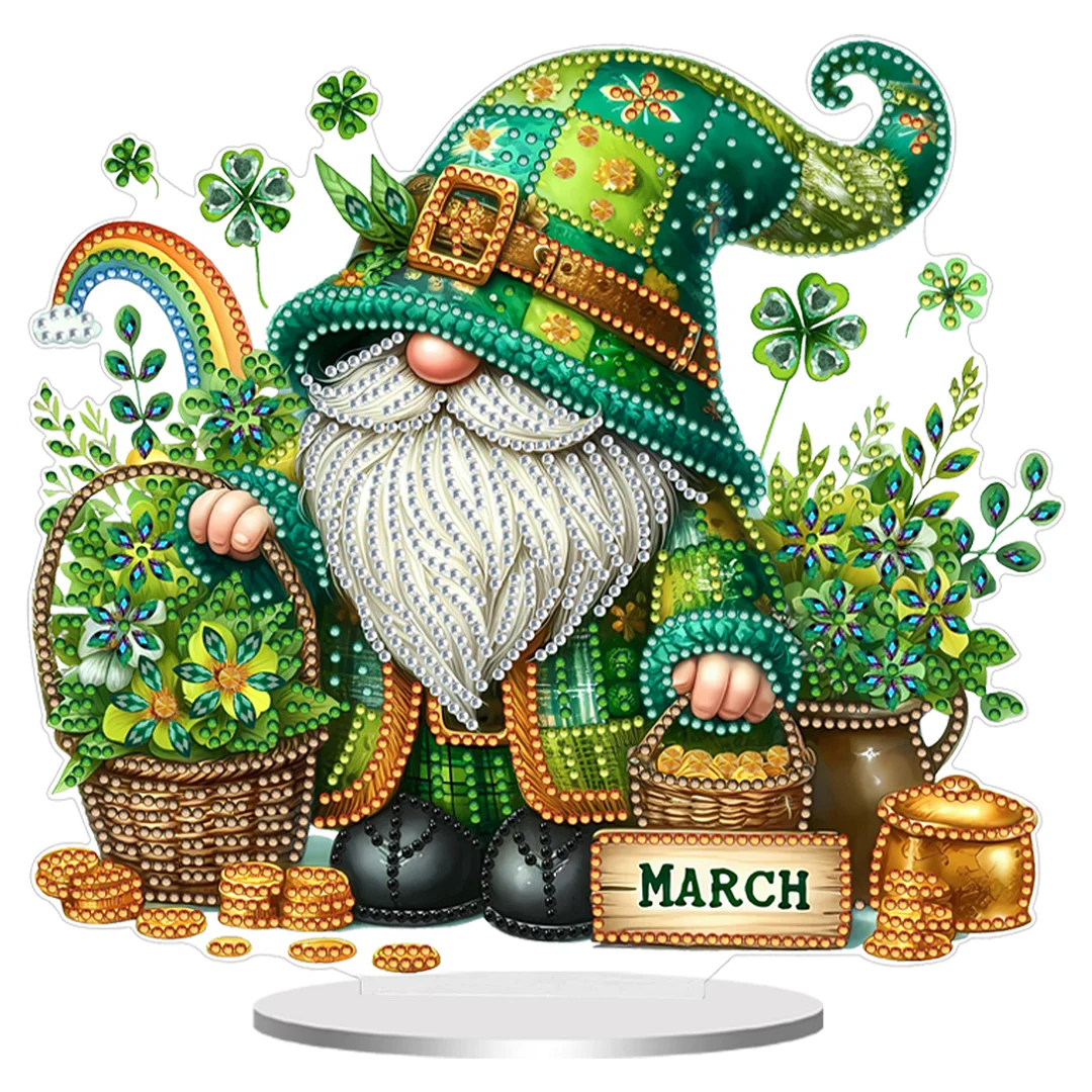 Diamond Painting Acrylic Single Sided March Gnome Ornaments Tabletop Home Office Decor