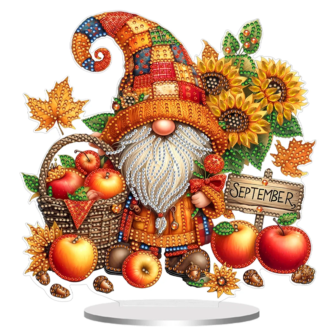 Diamond Painting Acrylic Single Sided September Gnome Ornaments Tabletop Home Office Decor