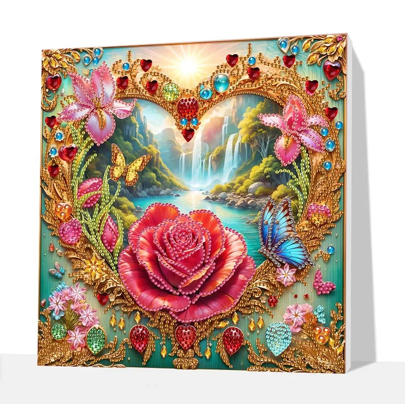 (Pre-Framed)Diamond Painting-DIY Crystal Rhinestone Heart-shaped Flowers(25x25cm)