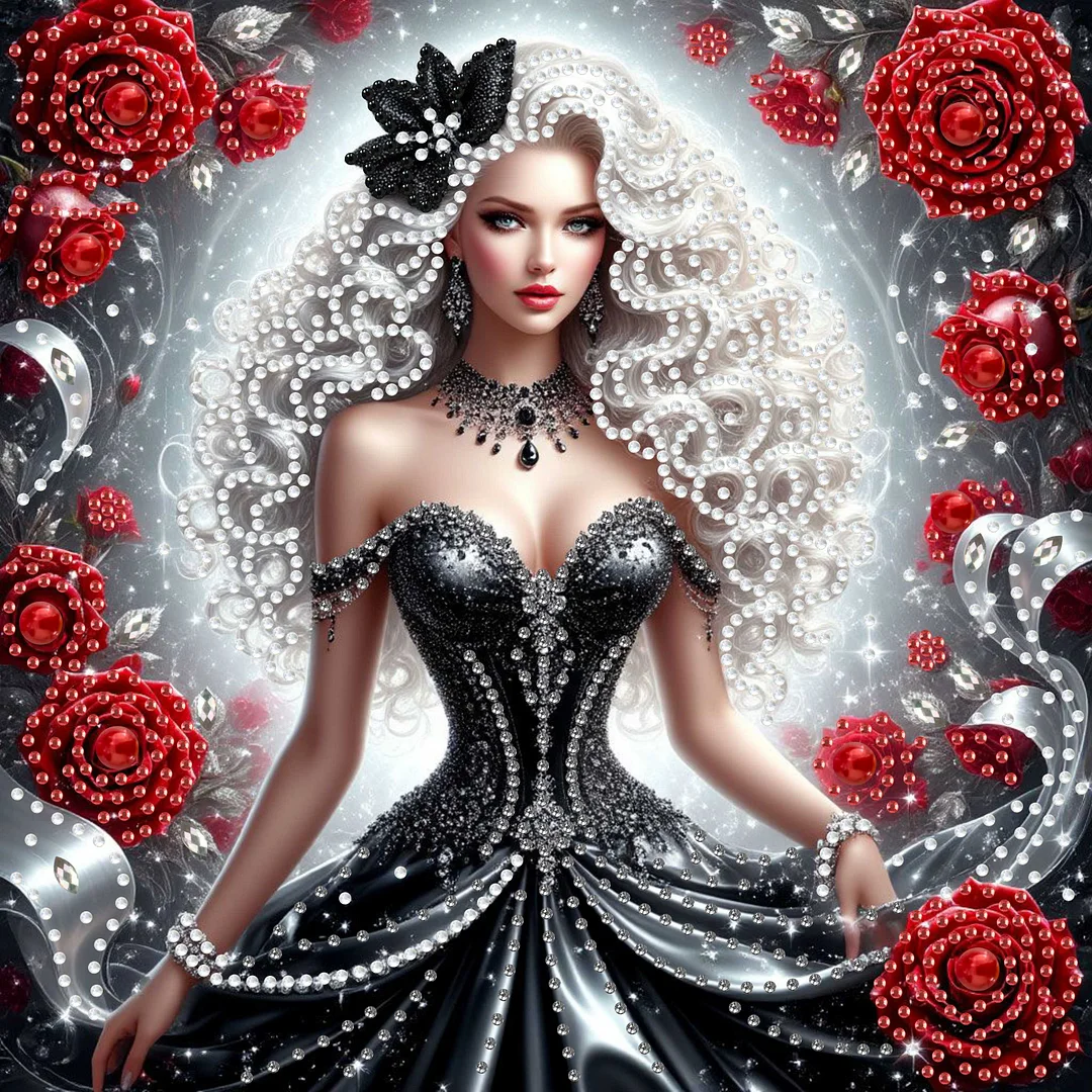 Diamond Painting-DIY Crystal Rhinestone Red Rose Beauty