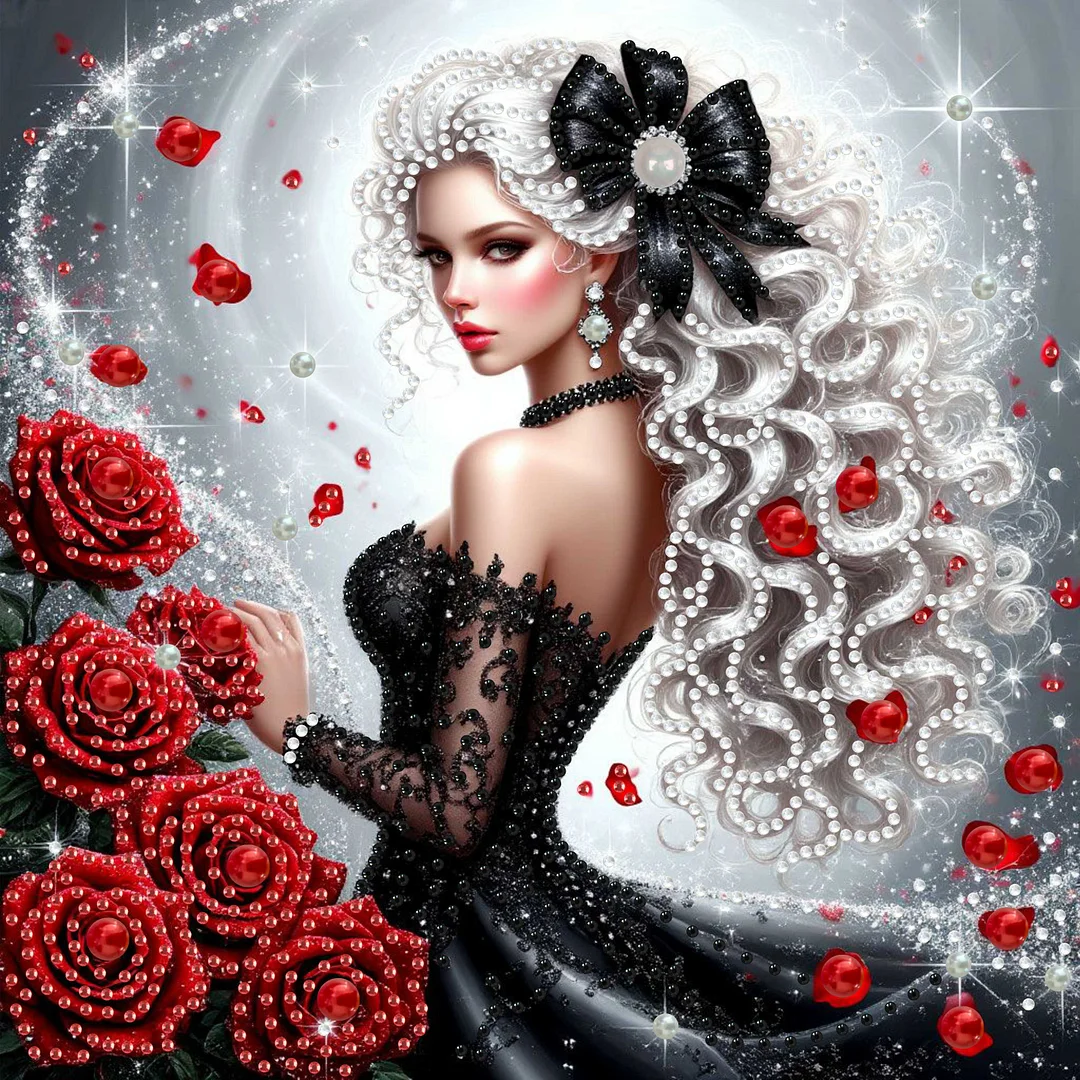 Diamond Painting-DIY Crystal Rhinestone Red Rose Beauty