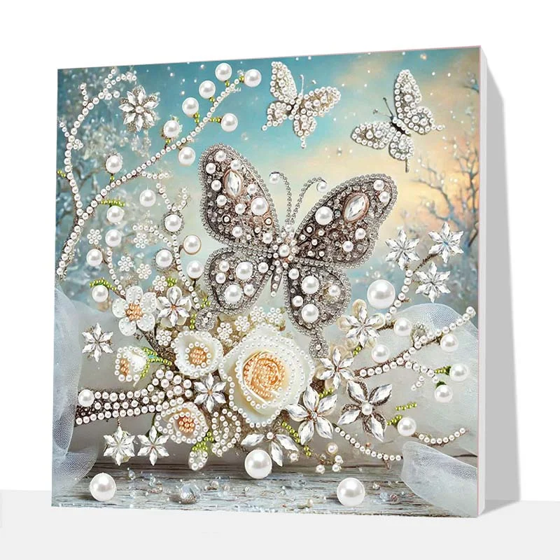 (Pre-Framed)Diamond Painting-DIY Crystal Rhinestone Snowy Butterfly(25x25cm)