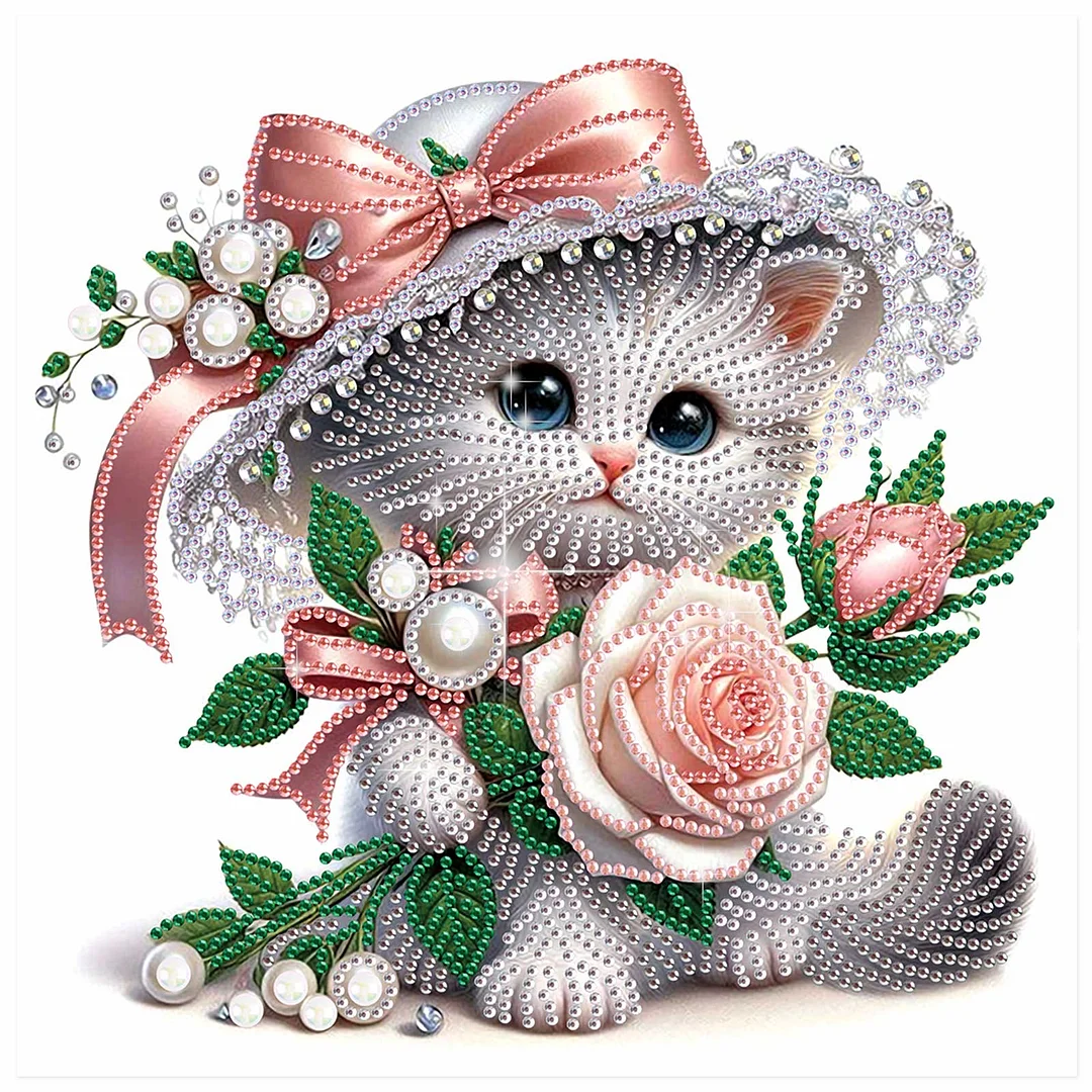 Diamond Painting-DIY Crystal Rhinestonet Flower Cat