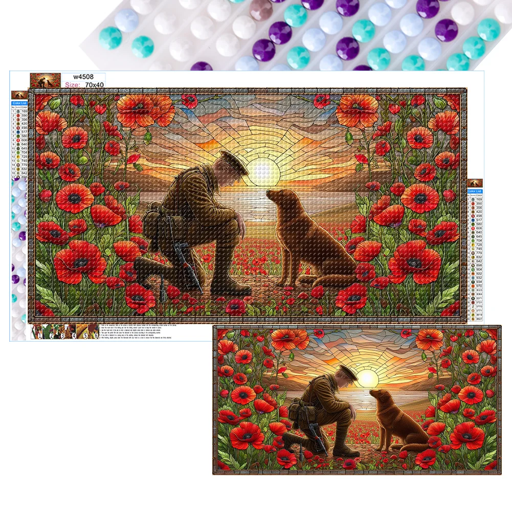 Diamond Painting-DIY Full Round Drill Stained Glass Art Warrior War Dog(40*70CM)