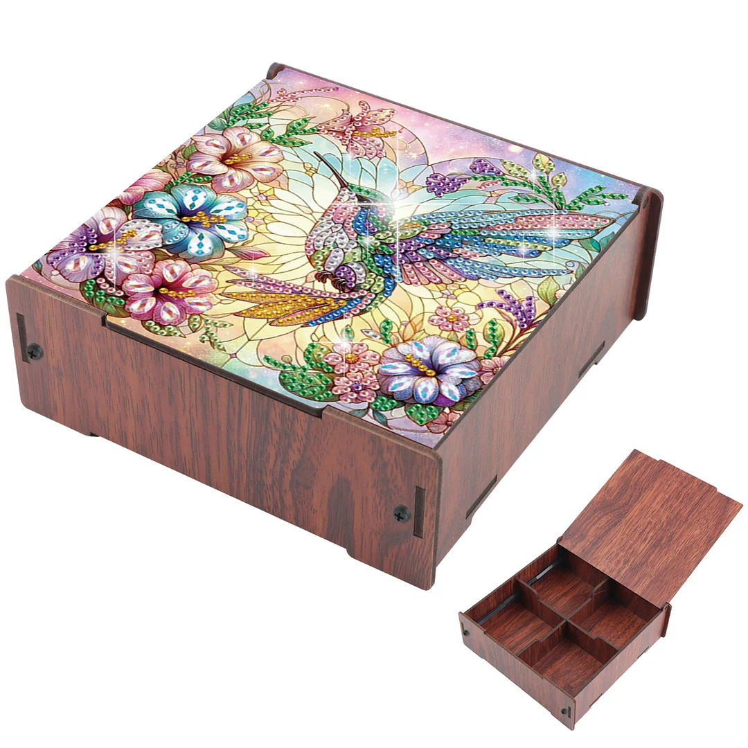 Diamond Painting Wooden Hummingbird 4 Slots Diamond Painting Storage Box for Adult Beginner