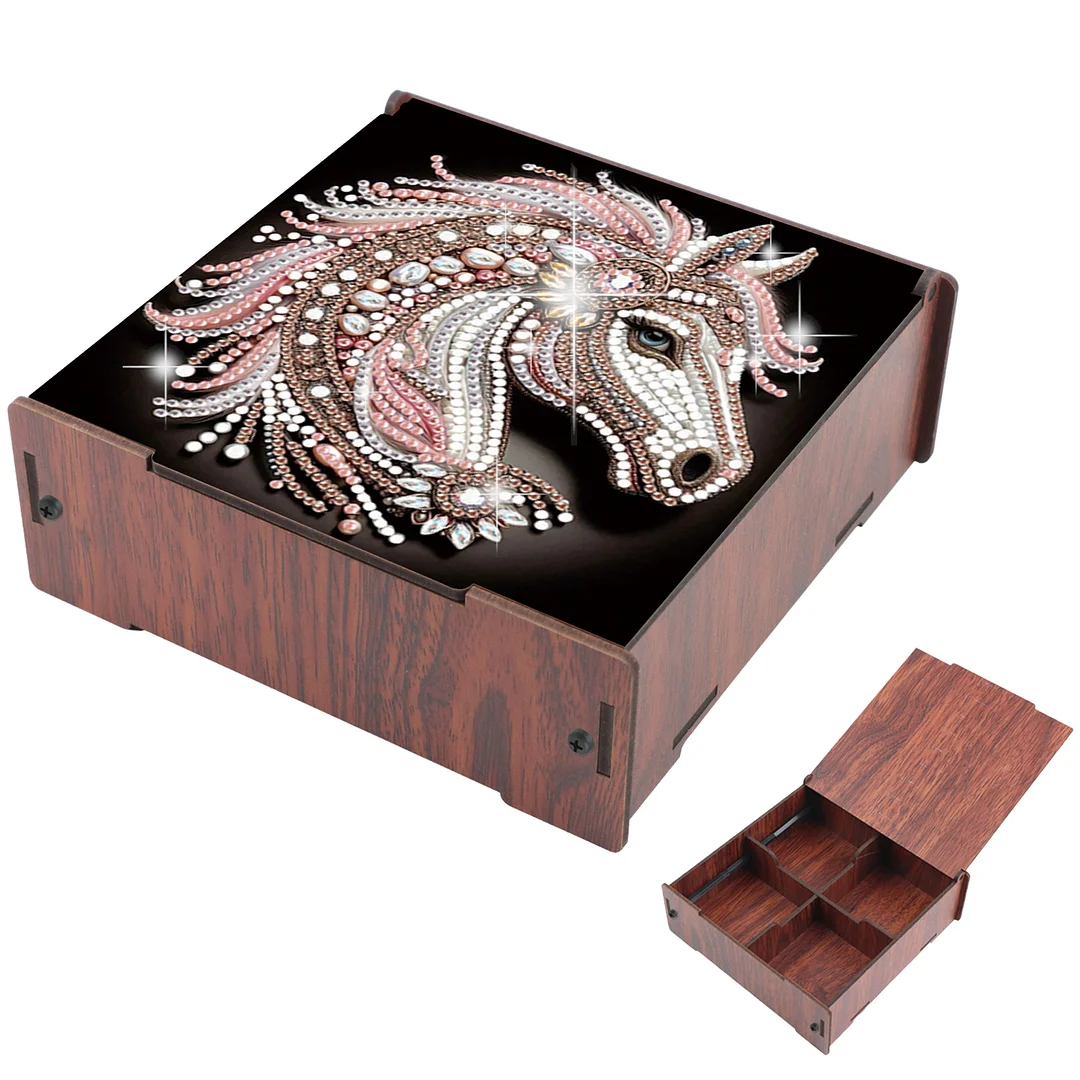 Diamond Painting Wooden Jeweled Horse 4 Slots Diamond Painting Storage Box for Adult Beginner