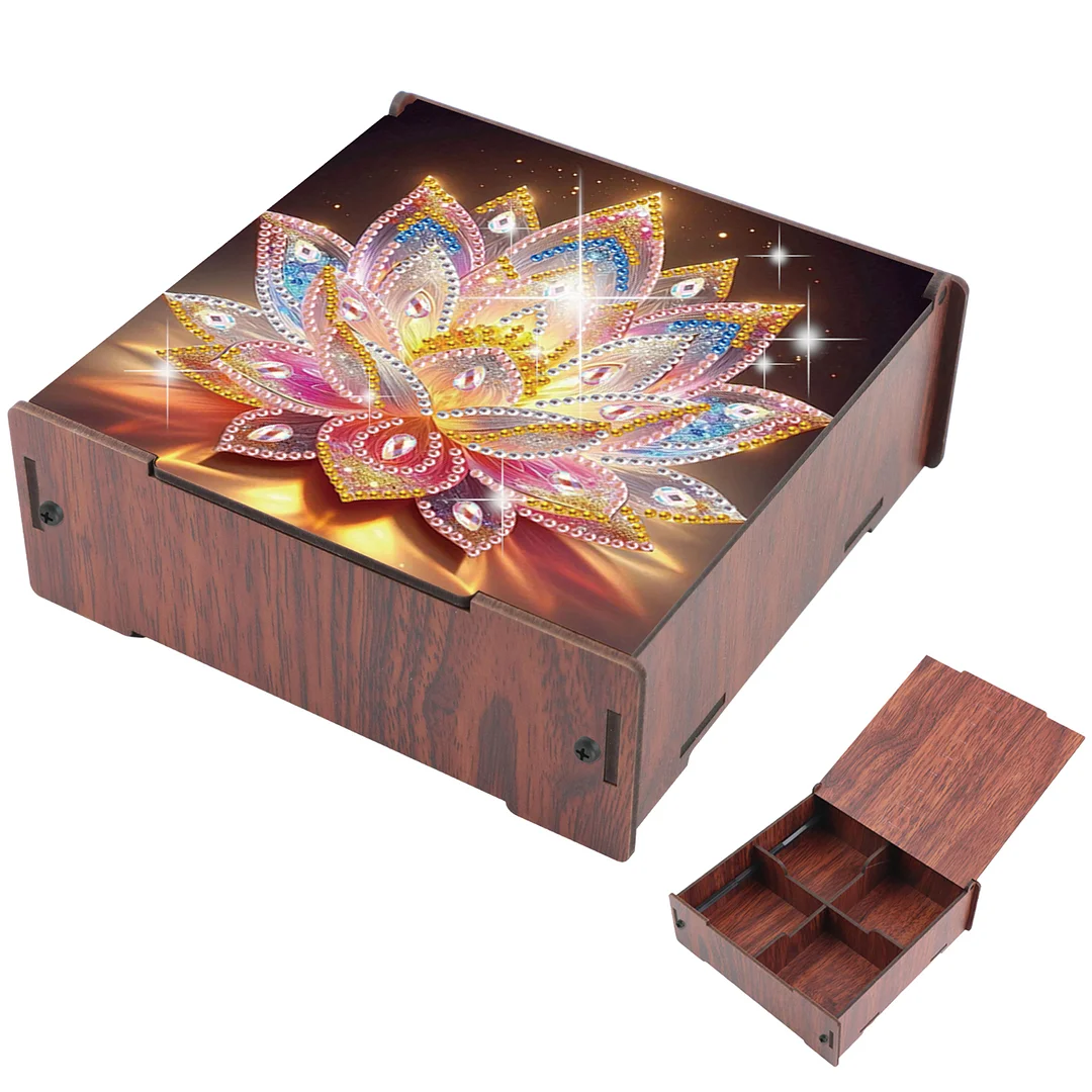 Diamond Painting Wooden Lotus 4 Slots Diamond Painting Storage Box for Adult Beginner