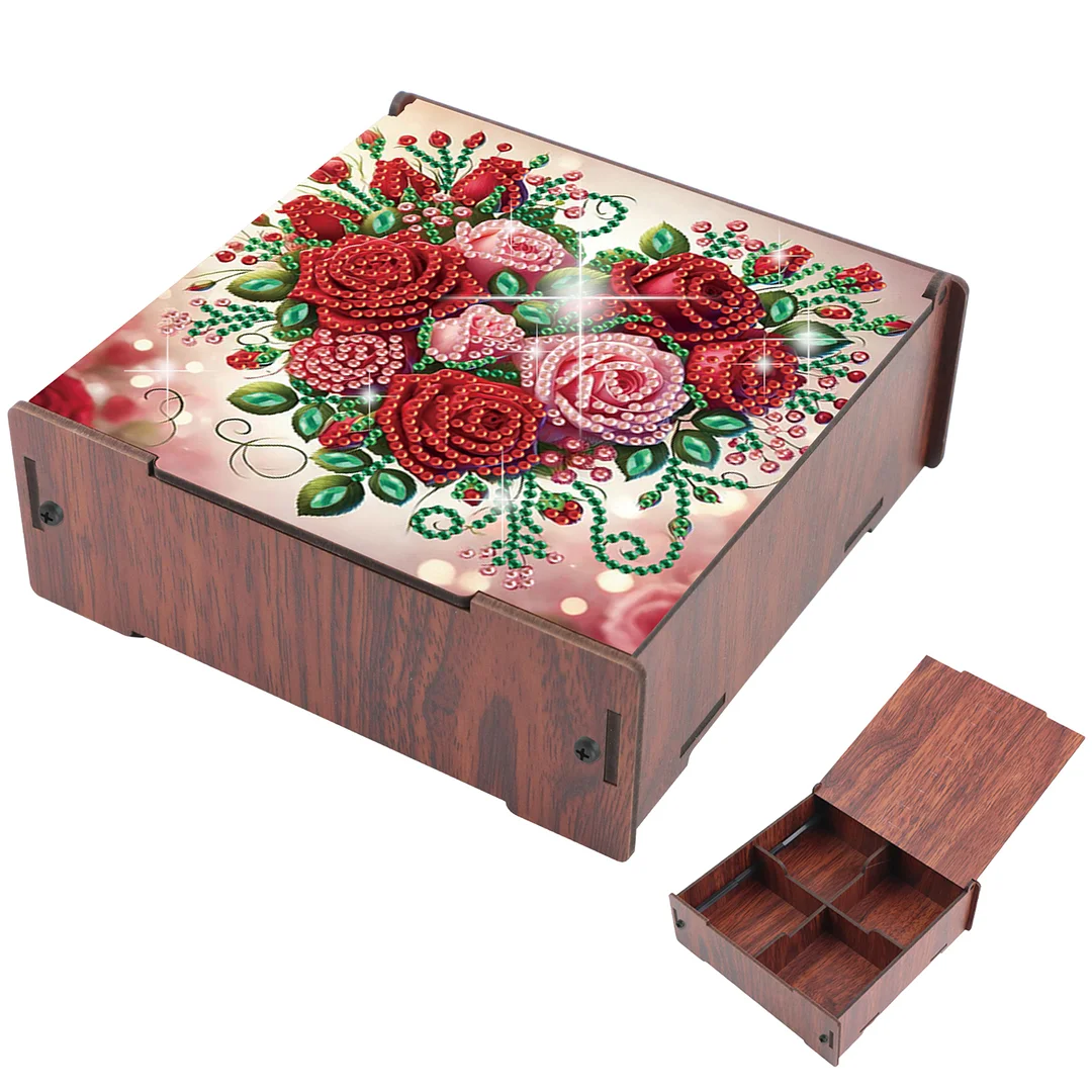 Diamond Painting Wooden Love Rose 4 Slots Diamond Painting Storage Box for Adult Beginner