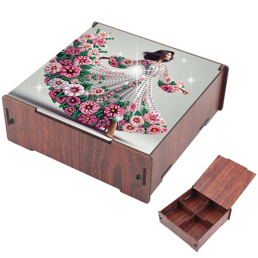 Diamond Painting Wooden Petal Girl 4 Slots Diamond Painting Storage Box for Adult Beginner