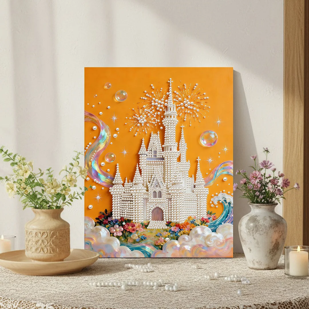 DIY Pearl Painting Castle for Home Decor with Frame(30x40cm)