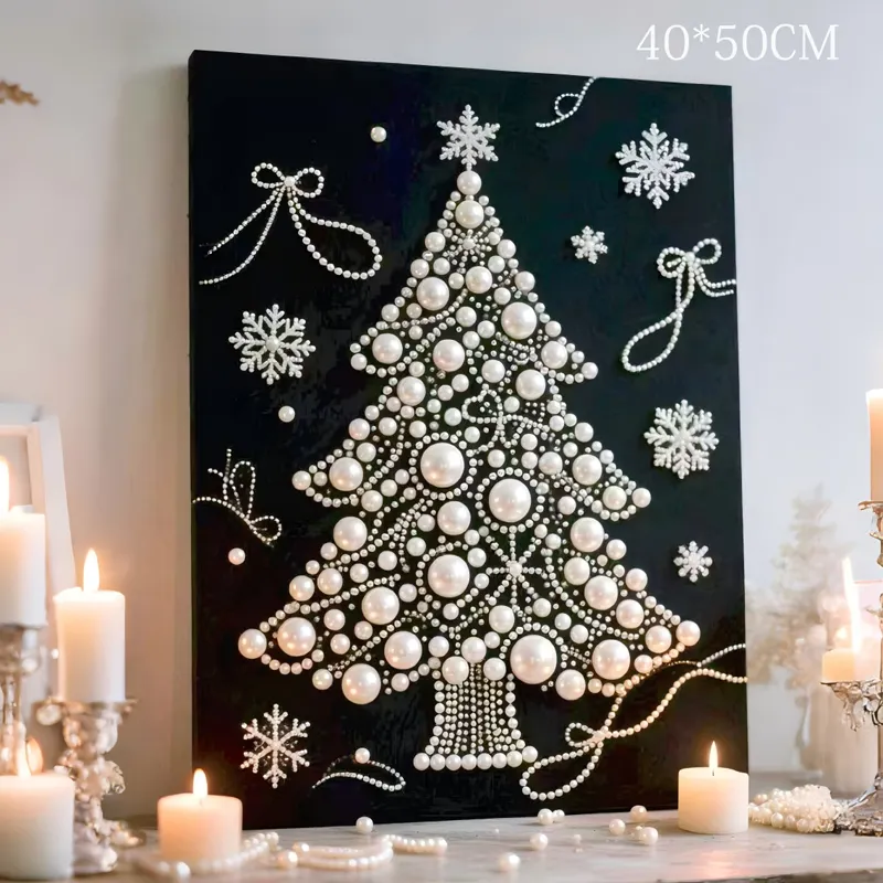 DIY Pearl Painting Christmas Tree for Home Decor with Frame(50x40cm)