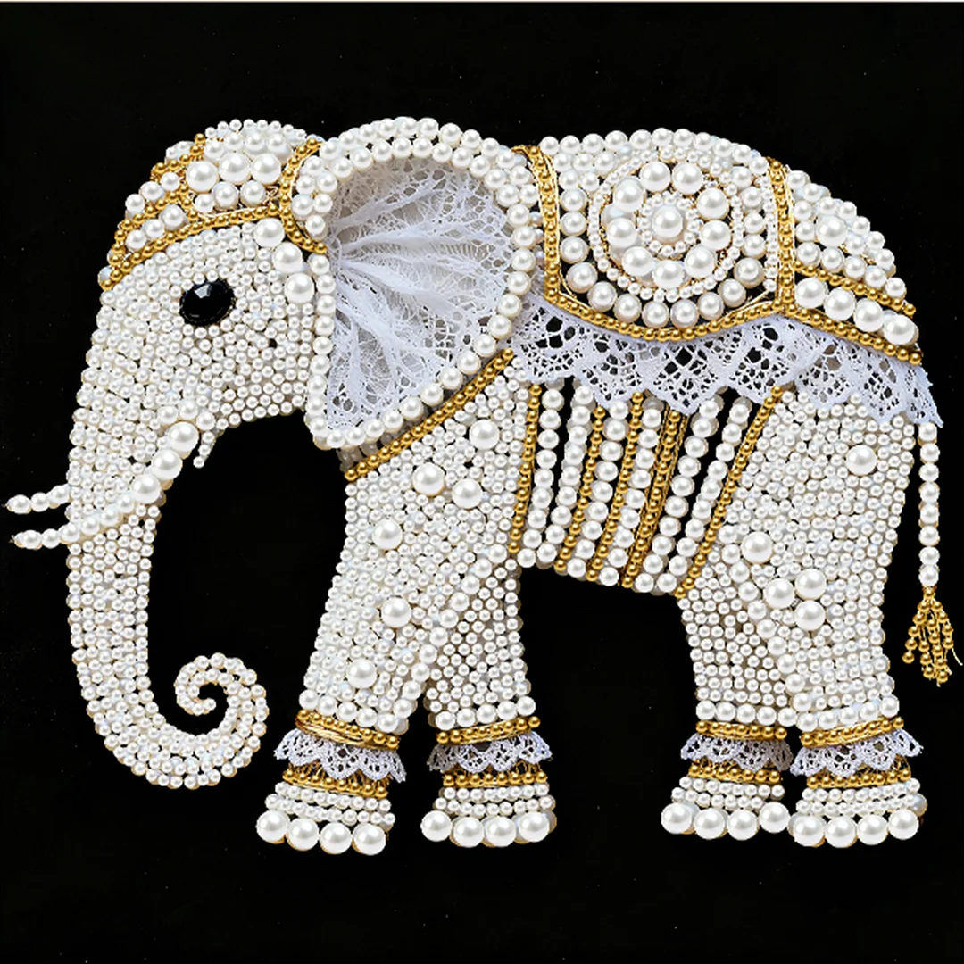 DIY Pearl Painting Elephant for Home Decor with Frame(25x25cm)